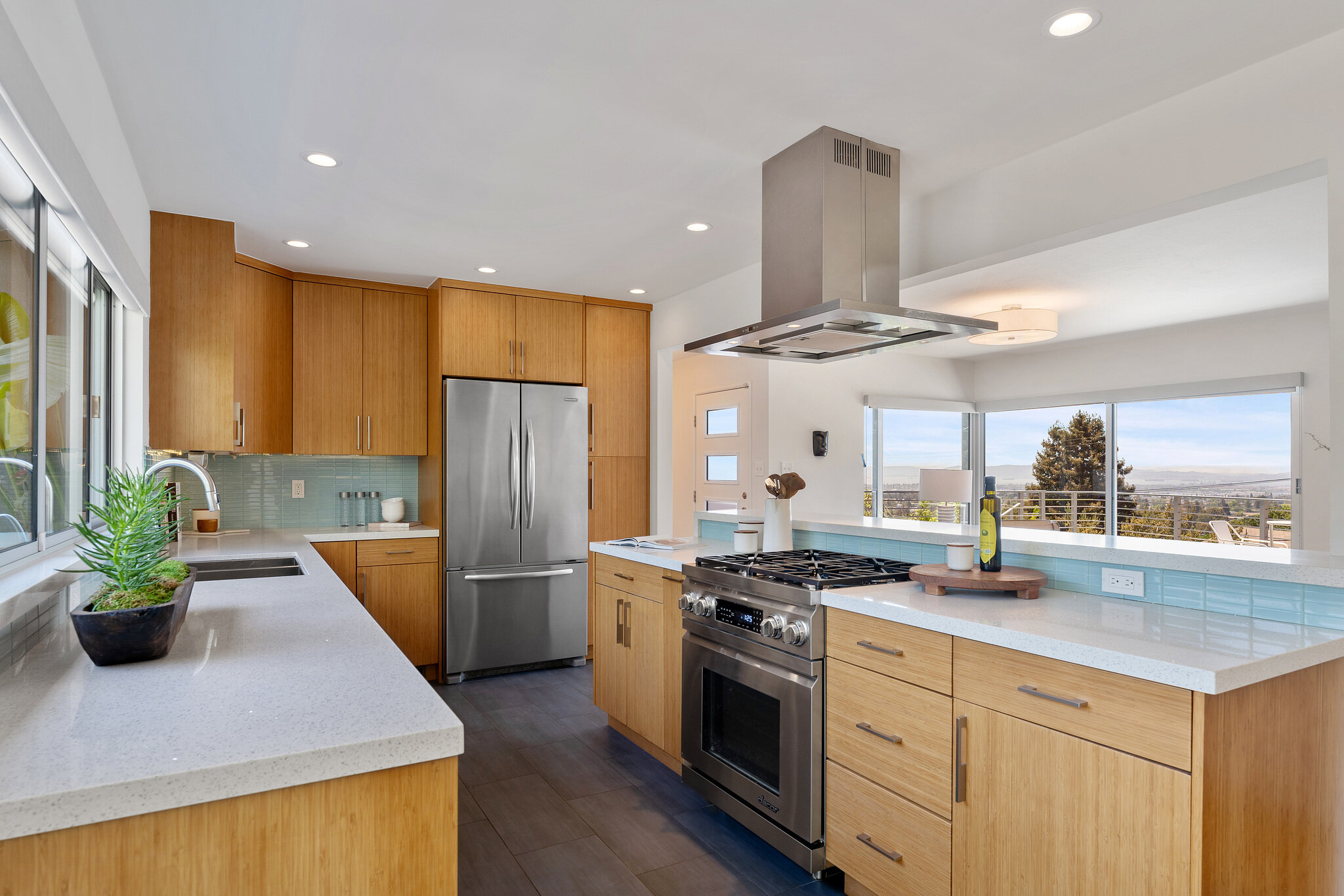 This couple was looking to revamp their mid-century view home by adding new outdoor living spaces and renovating the kitchen and main living areas. The beautiful outdoor living spaces also include an incredible edible garden. Utilizing sustainable building materials and opening the home up with natural cross ventilation creates an eco-friendly oasis above the city lights of San Francisco.